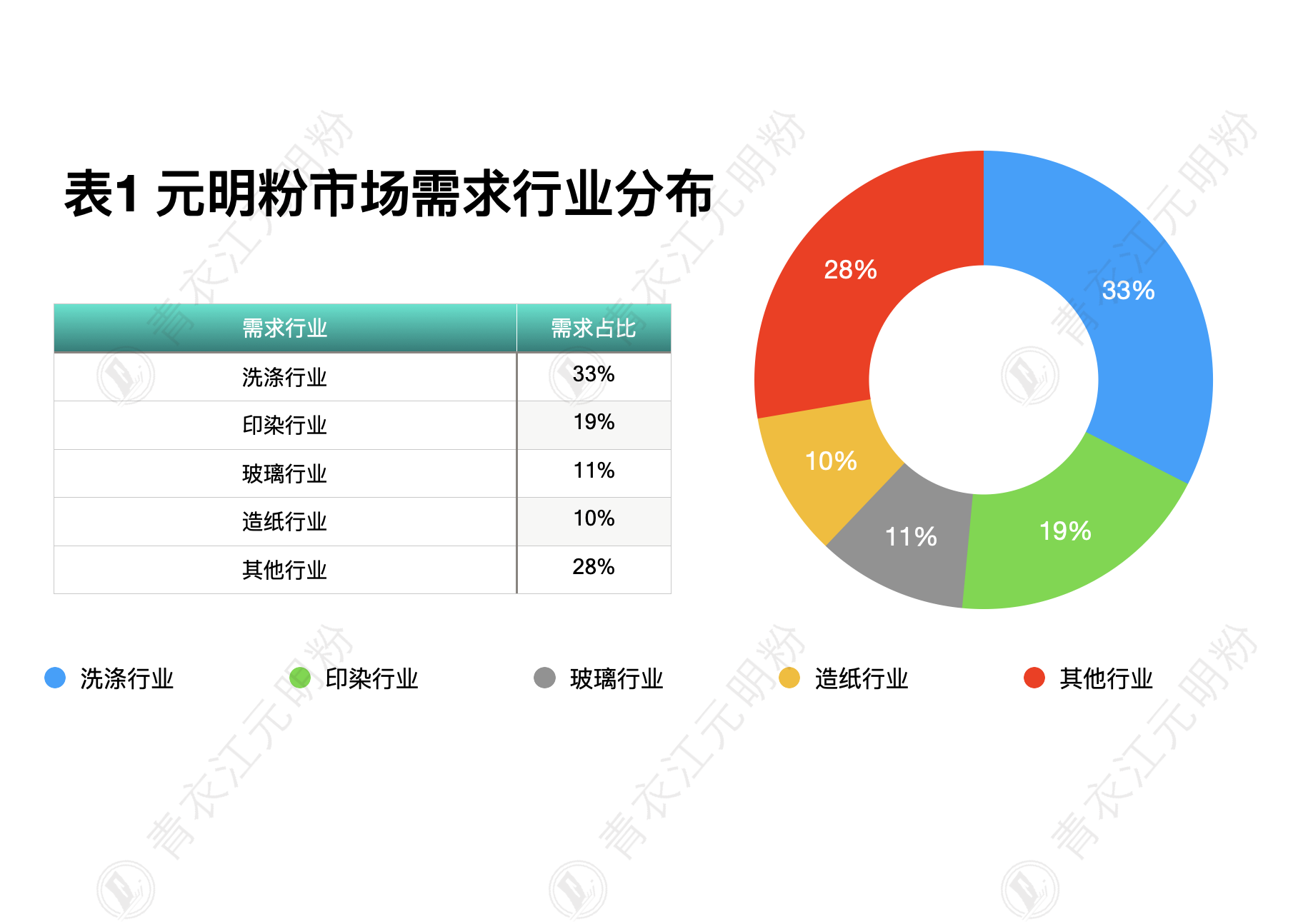 根據(jù)國家統(tǒng)計局和中國化工信息中心提供的相關(guān)資料整理,我們制作了元明粉的下游工業(yè)大致分布,如表1所示。